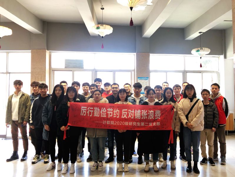 为了全面贯彻落实习近平总书记关于厉行节约、制止餐饮浪费行为的重要指示精神,引导大学生培养节约习惯,传承节俭美德,共同营造节约光荣、浪费可耻的节约型校园,计软院2020级研究生第二党支部于3月底开展了“厉行勤俭节约,反对铺张浪费”系列主题党日活动。