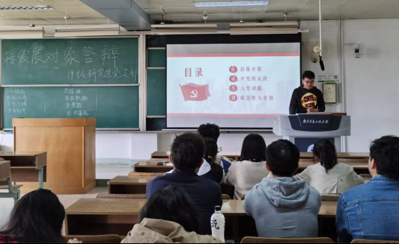 2021年是中国共产党建党100周年,为严把党员发展质量关,为党支部注入新鲜血液,4月12日下午,计软院2019级研究生党支部本着公平公正公开的原则,在明德楼N615教室举行了党员发展对象的公开答辩,支部全体党员、入党积极分子参加,答辩由支部组织委员张玫瑰主持。