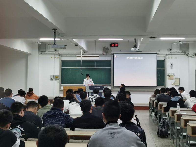 曾珺老师在讲座以电脑开机速度、网速异常等常见电脑问题引出实用的计算机技巧分享,同时围绕电脑病毒的运行原理展开关于网络安全的讲解,并且在现场用程序演示了勒索病毒的运行。之后,老师又为同学们演示了各类热门游戏的外挂运行,以及其使用原理,大大吸引了在座同学们的兴趣。曾珺老师也语重心长地劝诫同学们要合理合法地使用计算机,并且使用更加开拓的思维,计算机的思维来看待身边的小事。