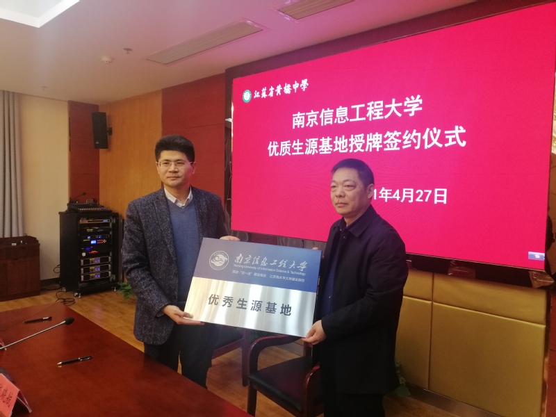 随后,在优秀生源基地签约授牌仪式上,巨传友代表南信大分别与泰兴一高校长钱凯、泰兴中学校长肖春华、黄桥中学校长钱晓航举行了优秀生源基地签约和授牌仪式。