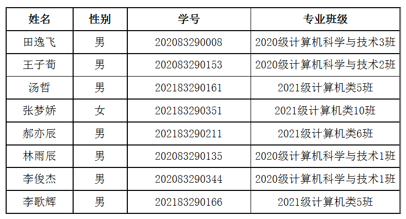 根据《中国共产主义青年团章程》发展团员的相关规定,经个人申请、团支部推荐及公开答辩,拟接收田逸飞等8名同志成为中国共产主义青年团入团发展对象,现将名单公示如下: