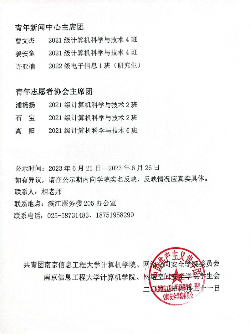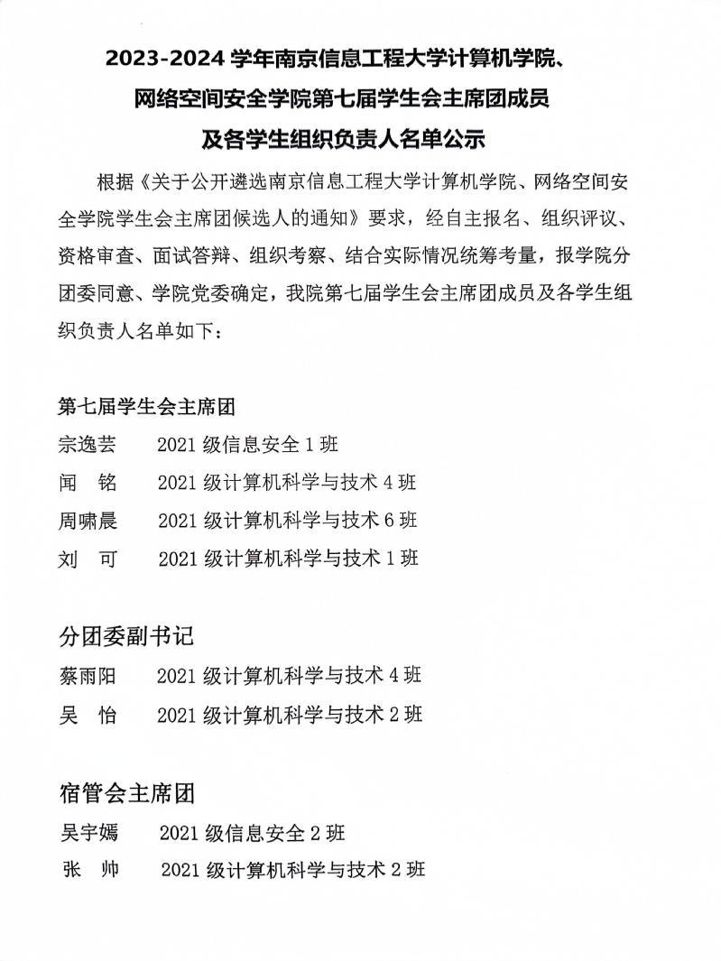 2023-2024学年世界杯(中国)、网络空间安全学院各学生组织主席团成员名单公示