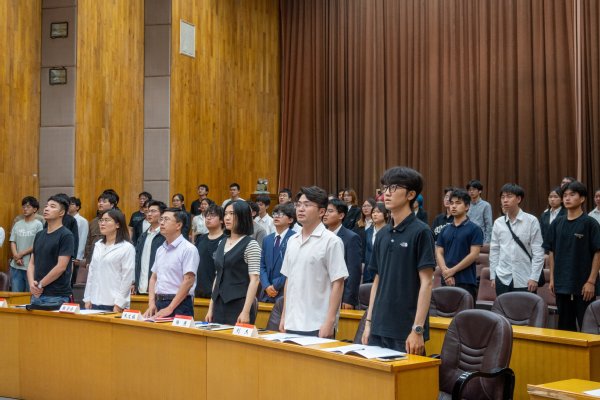 随着庄严的国歌声响起,会议正式拉开帷幕。朱文镇发表热情洋溢的致辞,他回顾了院学生组织的发展历程,对上一届学生会的工作成果给予了高度评价,他鼓励同学们积极发挥代表作用,以此次大会为契机,为学院发展和更好服务同学建言献策。朱文镇对代表们提出三点希望,一是不断加强理论学习,提高政治觉悟和分辨能力;二是强化奉献担当,提高工作水平,全心全意为同学服务;三是做好表率,充分发挥朋辈引领作用,带动周围同学共同进步。最后,朱文镇预祝大会取得圆满成功。