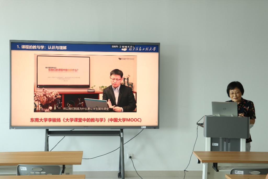 顾韵华教授介绍了在课程教学方面的经验。她指出,老师们在计算机公共课的教学上应该更加专业化,为不同专业学生设计贴近专业的课程内容;利用学习通平台上传自制录课视频及课外教学资料,更加贴近不同学习情况的学生;添加课后讨论以解答学生的疑惑,实现线上、线下混合式教学;通过课程前和课程中在学习通发布小测验、随机选人可以及时掌握学生的学习情况;通过教学方法和教学内容的创新积累,发表教改研究论文,积极申报教学改革课题。