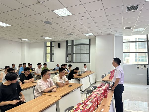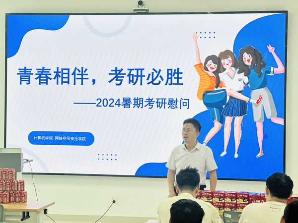 朱文镇鼓励同学们保持乐观向上的心态,抓住暑假黄金备考期,合理安排复习时间,有步骤、有规划地开展学习。朱文镇说,考研是一个考验耐力的过程,同学们要以饱满的精力和坚定的信念投入到复习中去,只有坚持到底,方能取得胜利。他表示,学院是同学们备考的坚强后盾,大家在备考过程中遇到任何学习、生活的困难,都可以及时与老师进行沟通,学院会尽全力提供帮助和支持。随后,在场老师们为同学们送上考研“加油包”,印有考研祝福的可乐和糕点让备考的计算机学子倍感温暖。