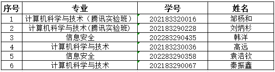 根据《财政部教育部人力资源社会保障部退役军人部中央军委国防动员部关于印发<学生资助资金管理办法>的通知》(财科教〔2019〕19号)的相关规定,以及《教育部财政部本专科生国家奖学金评审办法》(教财函〔2019〕105号)的精神和要求,结合《世界杯(中国)、网络空间安全学院本科生国家奖学金院内初审评分细则(试行)》,通过个人申请、学院审核、现场答辩等形式综合计算学生的排名,并经学院研究讨论,拟推荐邹杨和等6名同学为2024年度国家奖学金院内推荐候选人,现将名单公示如下: