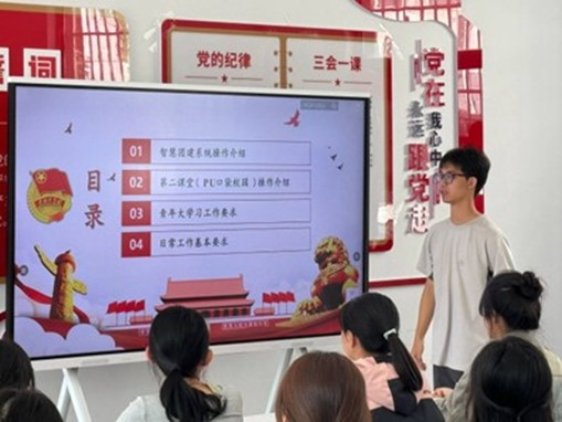 廖治全从团日活动、主题教育到青年大学习的组织学习,从PU第二课堂活动的发起、录入和完结到智慧团建系统的审批、录入和管理,从三下乡暑期社会实践到优秀学子母校行活动,详细介绍了团支书的具体工作。他特别强调了支部建设的重要性,鼓励团支书充分发挥示范引领的作用。