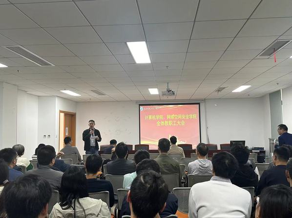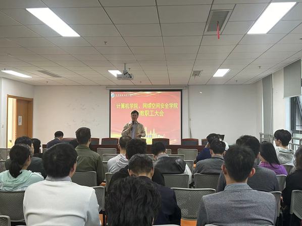 10月9日下午,世界杯(中国)、网络空间安全学院在阅江楼337报告厅召开全体教职员工大会。此次大会围绕学校财经政策宣讲、本科教育教学审核评估迎评工作部署以及近期学院各项工作安排等事项展开。会议由学院党委书记张京波主持,全体教职员工参加会议。