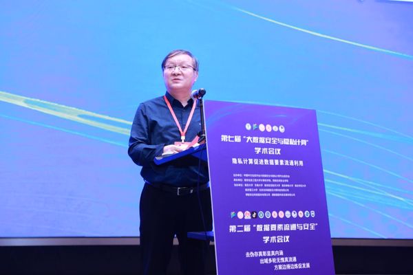 中国中文信息学会理事长方滨兴致辞,他指出在李凤华研究员等学者提出隐私计算概念的基础上,中国中文信息学会在2018年适时成立了大数据安全与隐私计算专委会,在过去6年中专委会搭建了很好的学术交流平台,不仅深入探索前沿基础理论与关键技术,主动分享研究成果,还积极推动了隐私计算和数据安全的落地应用和人才培养,充分体现了专委会的凝聚力、合心力以及强烈的社会责任感。他期望本次大会参会专家、学者围绕两个主题充分开展学术交流和产业合作,提出好见解、好思想,为加速我国数字经济的高质量发展贡献力量,为我国乃至全球的数据安全与隐私计算注入蓬勃的活力。