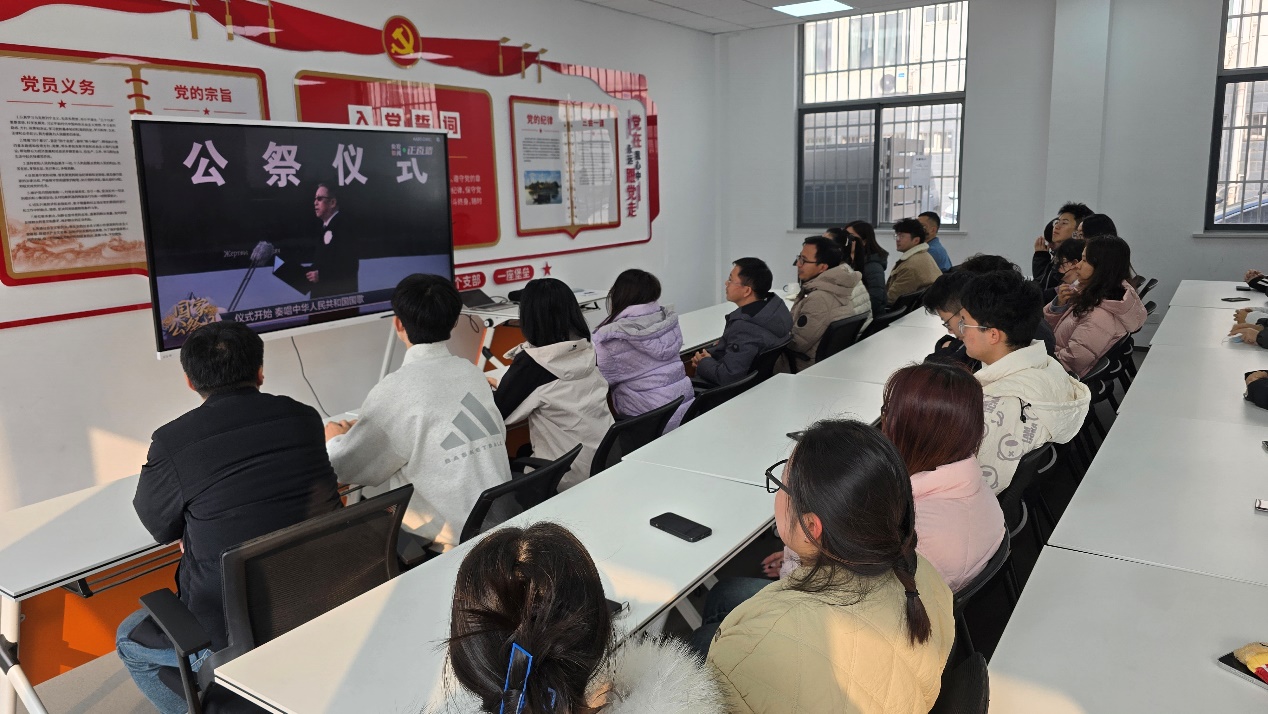 张京波和朱文镇分别领学相关文件,他们表示,全体师生要深刻领会新时代爱国主义教育的重大意义,把学习贯彻爱国主义教育法与学习贯彻习近平新时代中国特色社会主义思想结合起来,切实融入到日常的工作、学习和生活中。上午十点,公祭仪式正式开始,全体师生同唱国歌、起立默哀,在庄严的警报声中共同回望历史,追忆逝者,缅怀先烈。