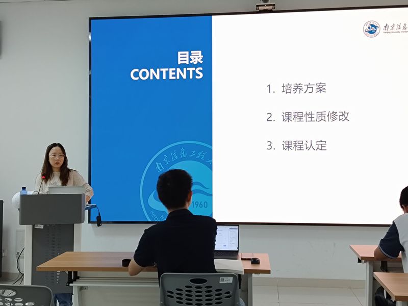 随后,唐雯老师对教学管理政策进行分层解读:学生培养方案可通过教务系统、学院官网查询,2024级学生需完成10个通识学分;)课程性质修改需于教务系统操作;学分认定遵循“以高认低”原则,理论与实践类课程分开核算。针对学生关心的交换生申请(9月22-26日)、英语免修等事项作出说明,并告知后续询方式。